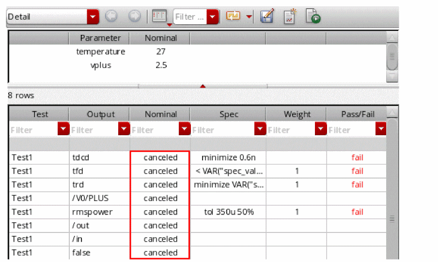 After you run simulations in ADE Explorer, if any particular data point fails or shows undesired results, you can selectively change the setup of that data point and debug it. For this, you can use the ADE Explorer Debug Environment.