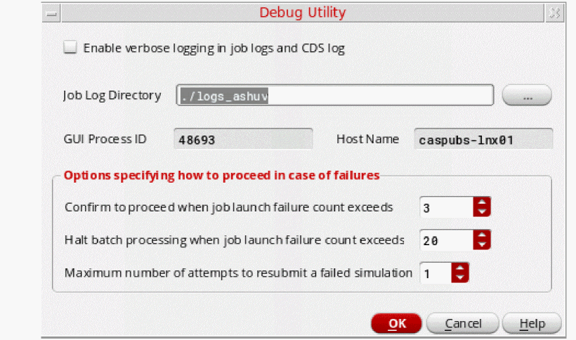 - The debug options settings specified in this form will be applied on all the jobs (ICRP sessions) that are new or waiting to run a simulation. To apply these changes on the currently running jobs as well, restart the jobs by right-clicking the ICRP icon in the Run Summary assistant and choosing Stop and Resubmit.