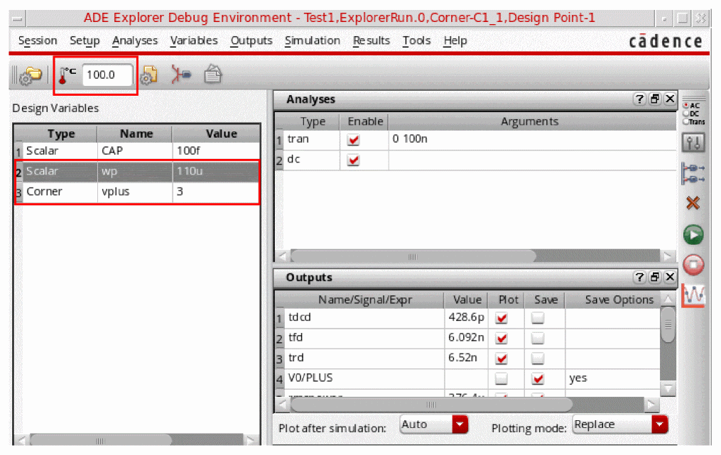 - Changes in corner values in the debug environment result in a new corner being created in the ADE Explorer view.