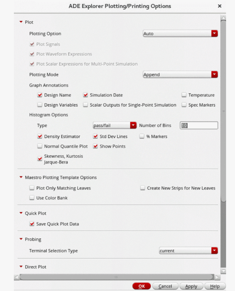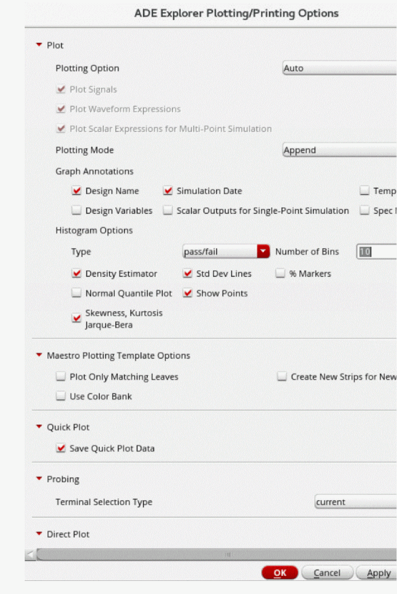 You can select the plotting modes for automatic plotting from the Direct Plot, the Virtuoso Visualization and Analysis XL Calculator and the Results Browser windows also.