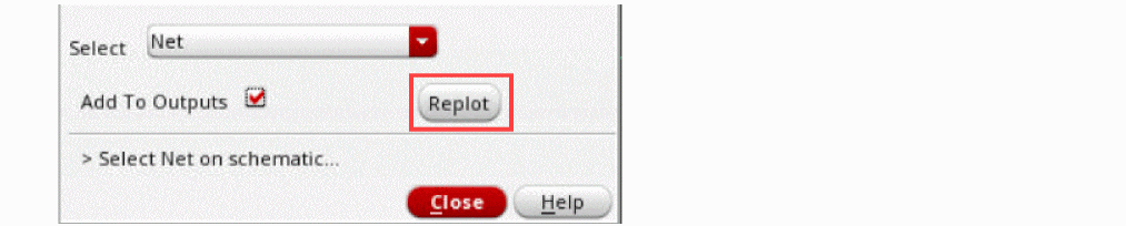 Replot triggers the plotting of the selected instance or instance terminal with modified specifications.