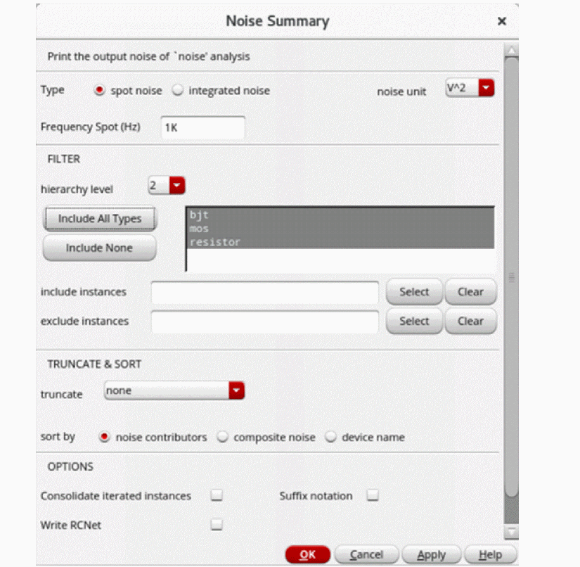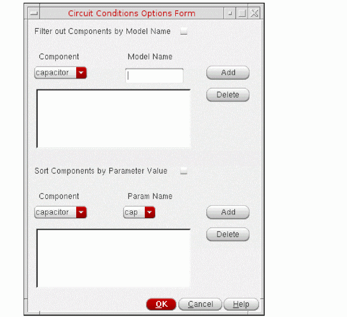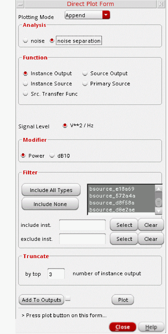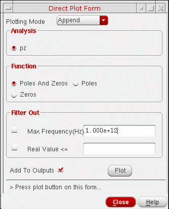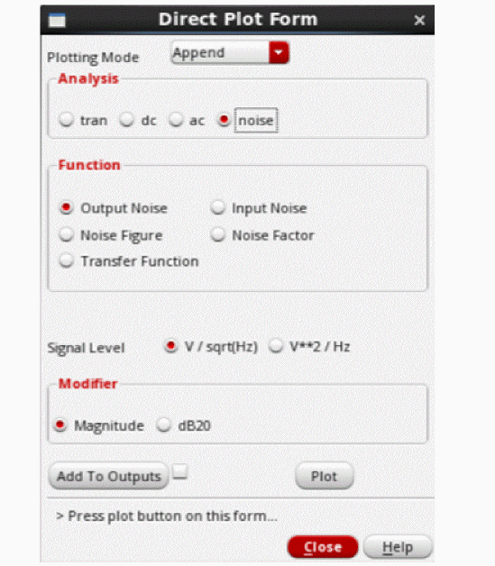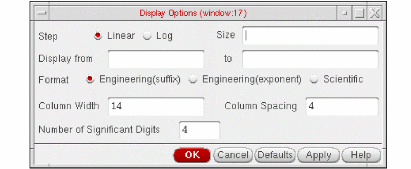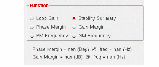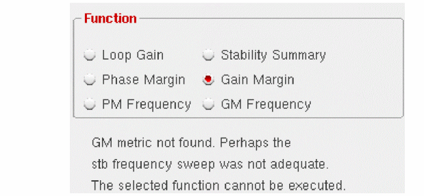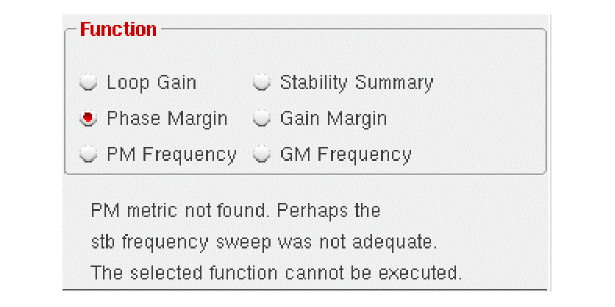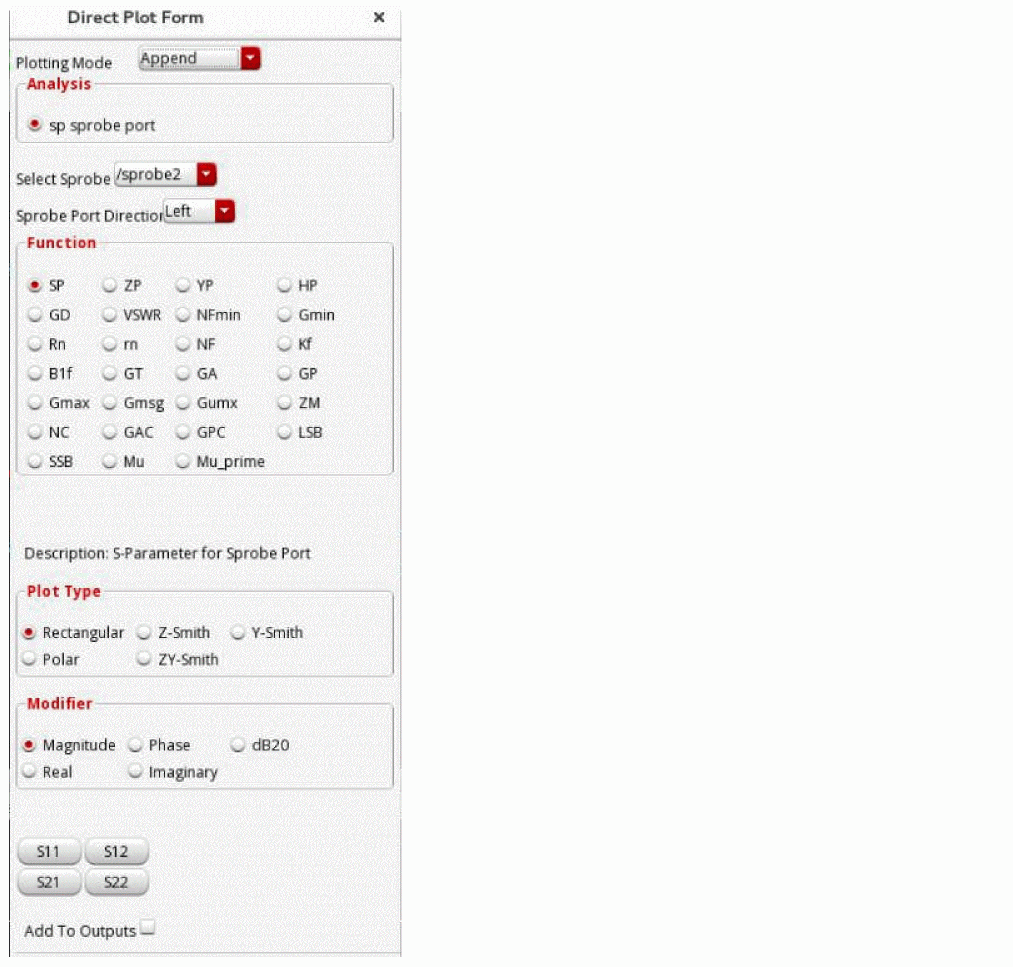 Modifier , which is used only for rectangular plots, specifies the modifier the analog circuit design environment uses to reduce complex data for two-dimensional presentation. Option availability depends on the selected function; some functions, such as stability factor, do not require a modifier.