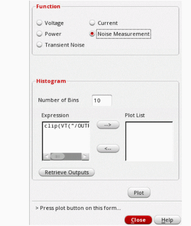 - In the Virtuoso Visualization and Analysis XL Calculator, use the plot icon to plot waveforms.