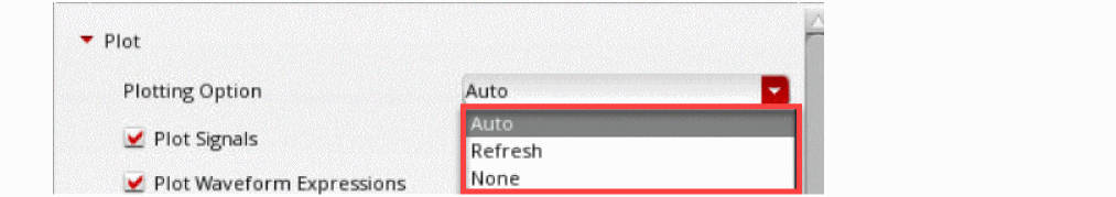 You can specify the default plotting option to be used for the automatic plotting of results after a simulation run is complete and also used to specify which plotting option is used when you click the Plot all waveforms