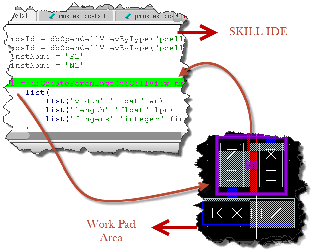 Figure 1-5 Cross-highlight Pcell IDE and SKILL IDE