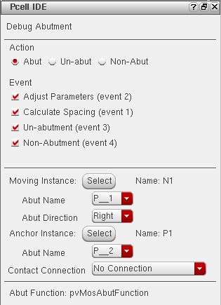 - Click the Debug Abutment button from the Pcell IDE toolbar.