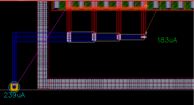 Note: The tapering is available only for the Create Wire command. - Select an instance from where you want to start creating the wire. By default, the taper mode is noTaper. This means that the wire width remains constant even after connecting the pins.