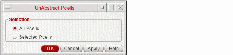 - Select All Pcells or Selected Pcells to specify if you want to unabstract all Pcells or the selected Pcells.