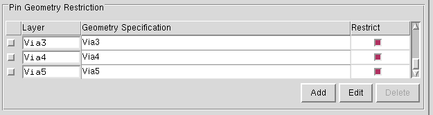 - From a list of all the layers specified in the technology file, select those that you want to assign for pin geometry.