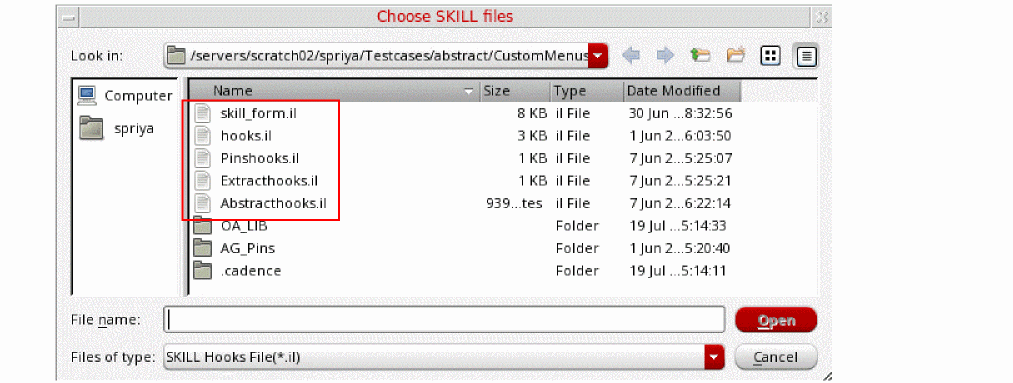 Select the required SKILL hook files and click Open.