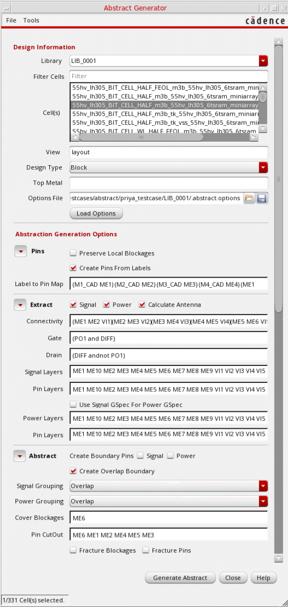 - After updating values in the Design Information and Extract sections, click Generate Abstract to run Abstract Generator.