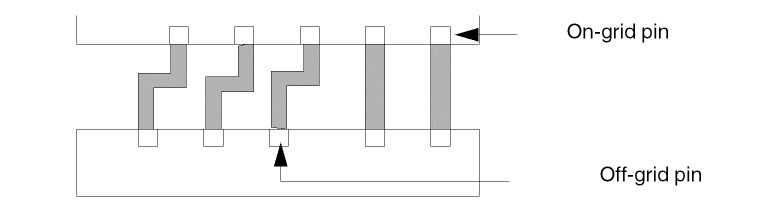 - Ensure that off-grid pins follow spacing rules by using the pseudogrid point at the center of the pin geometry.