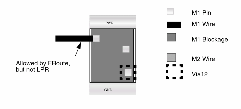 The line probe router (LPR) will not route to any pin that is surrounded by a blockage on that layer.