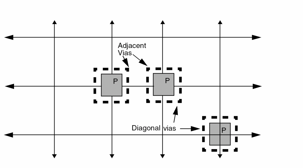 If you place single grid pins on orthogonally adjacent grid points, you must use via-to-via routing pitch; otherwise, the router might not be able to access the pins.