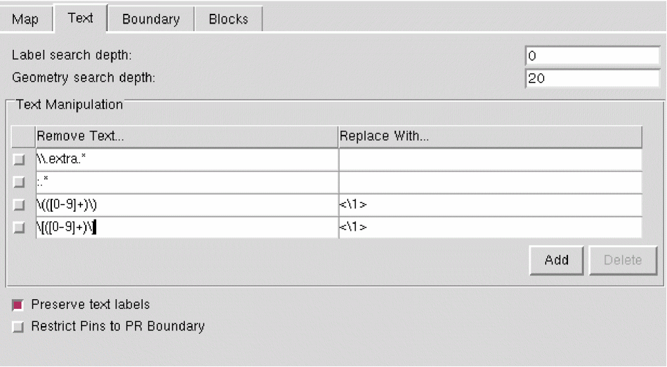 - Select Preserve text labels to retain all existing pins in the layout, along with their labels, irrespective of whether the pins were created by Abstract Generator during the Abstract step.