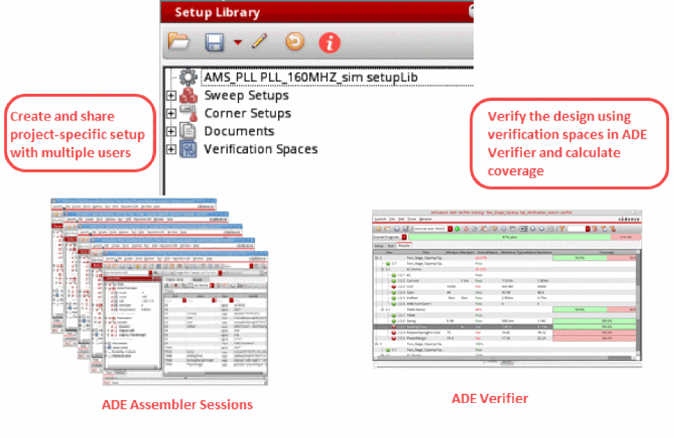 The following figure illustrates how you can use the Setup Library assistant in ADE Assembler and ADE Verifier.