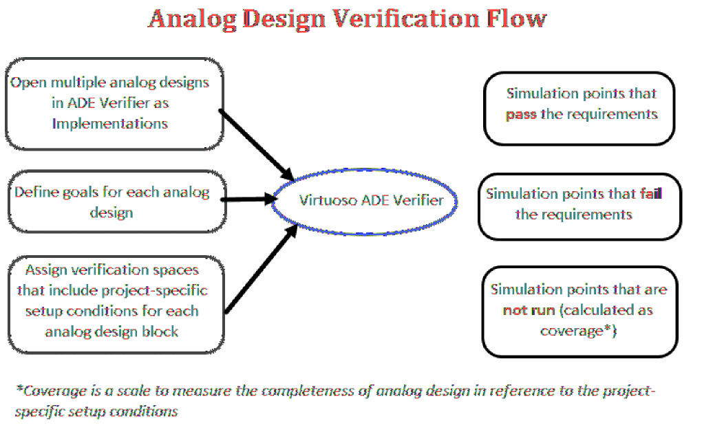The following figure describes the analog design verification workflow in ADE Verifier: