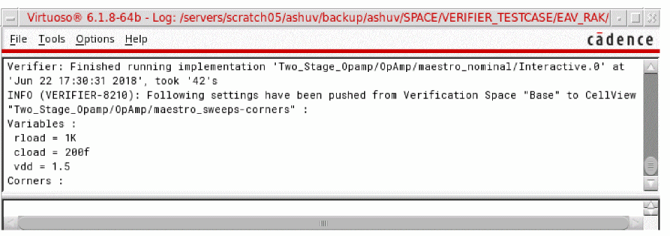 In addition, the summary of changes made to the sweep and corner setup for the selected cellview is also displayed in CIW.