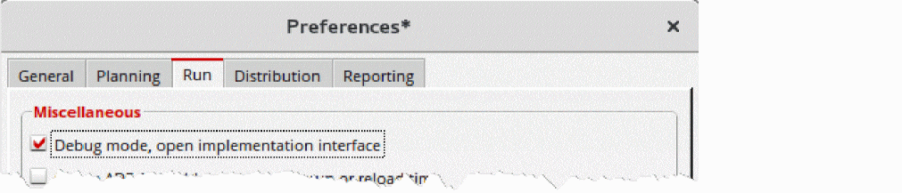 The issues related to ADE Assembler might not be visible because they are running in the background when working in ADE Verifier. For debugging such issues, you can run implementations in debug mode in a user interface, where the implementation interface, such as ADE Assembler, gets displayed to monitor the runs. Select the Debug mode, open implementation interface option in the Run tab of the Preferences form.