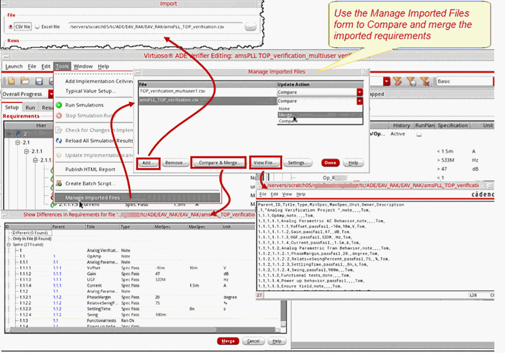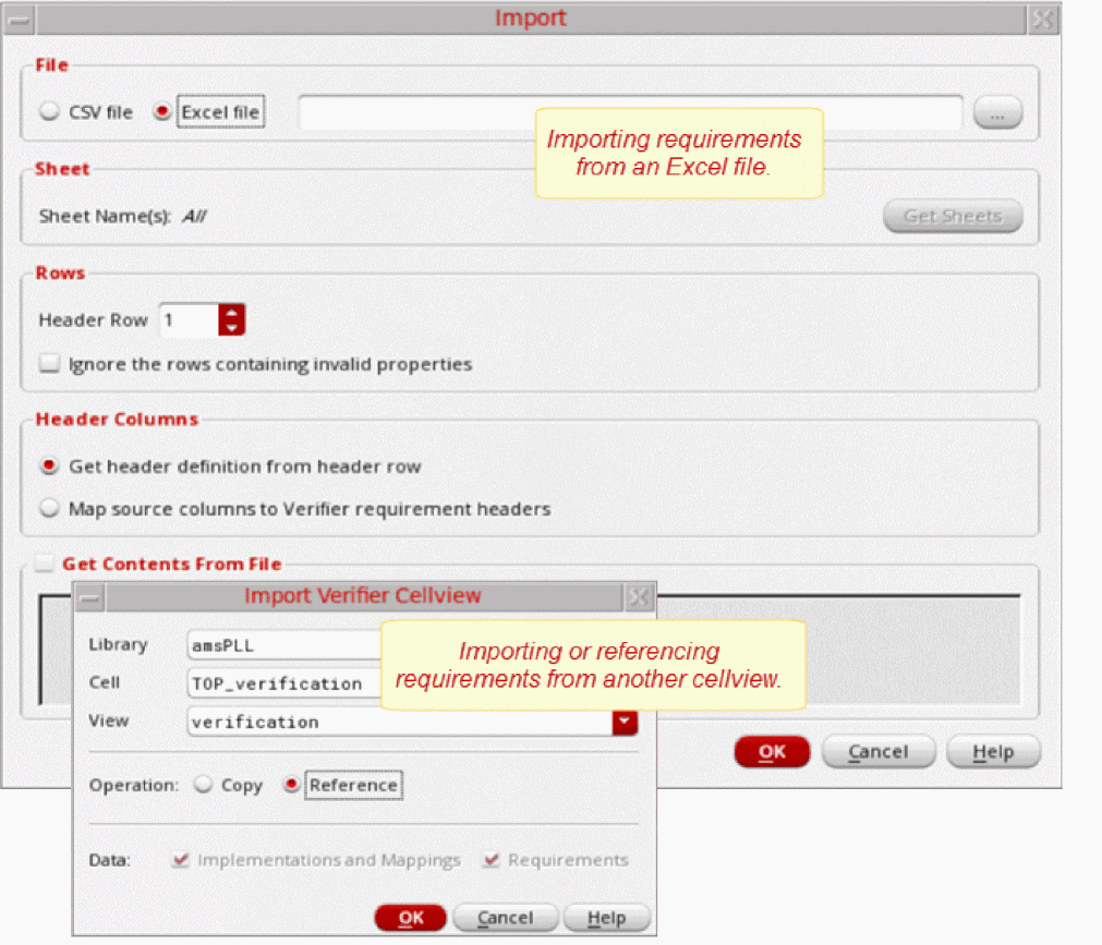 For details on working with the requirements copied from the imported cellview, see Importing Requirements from a Verifier Cellview.