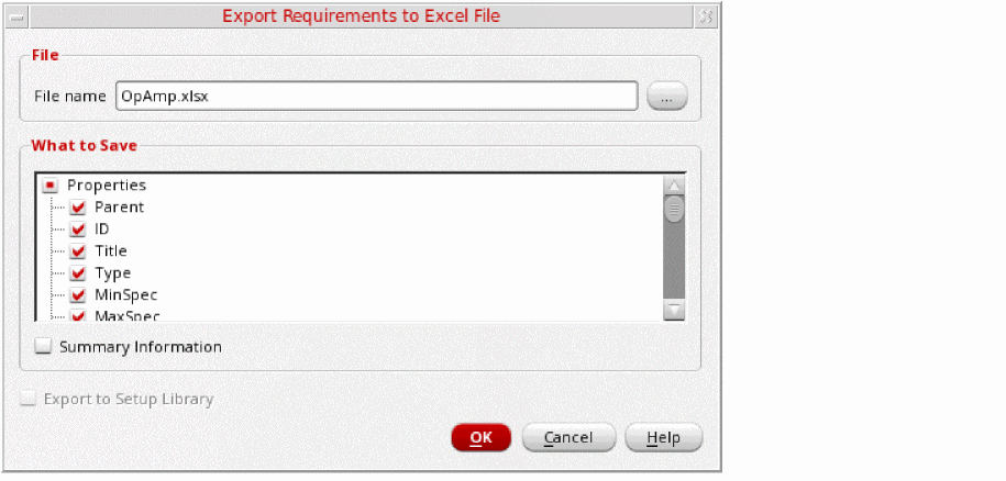 The Export Requirements to Excel File form appears.