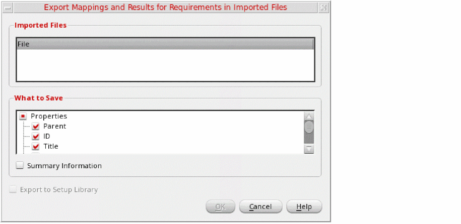 You can also export the mappings and results for requirements in the current Verifier session to imported files.
