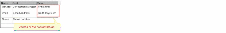 To use custom fields in Verifier, you must define the fields in a CSV file and set the Verifier environment to include those fields.