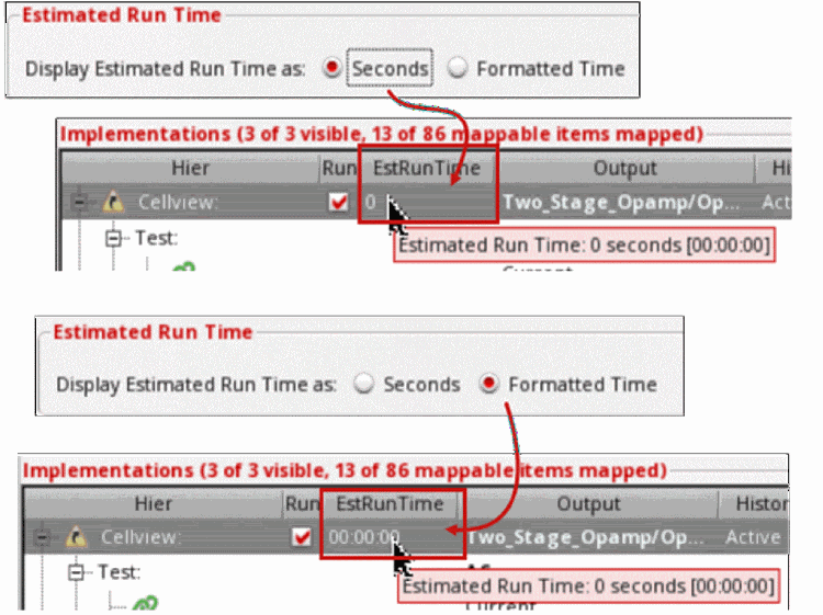 - Ensure that the Run check box is not selected for the implementation cellview.