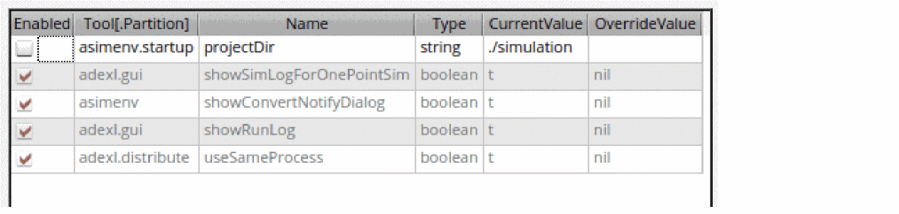 Setting this variable shows the run status from the maestro view in the Information assistant as well as the tooltip of the Status column on the Run page. - In ADE Assembler, run a simulation as follows: