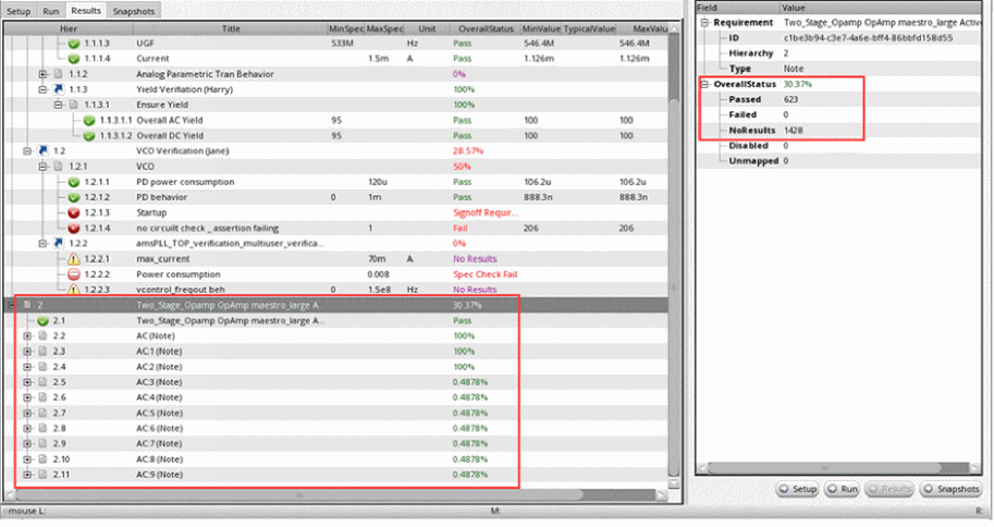 After you have set up your design verification project with mapped requirements and implementations, you capture the simulation results of the implementation cellviews. Verifier uses these results to determine the verification status of the entire project, and for each requirement in the project. To capture the results, you can run the implementation cellviews from Verifier or load the existing run results in Verifier. You can also review the results.