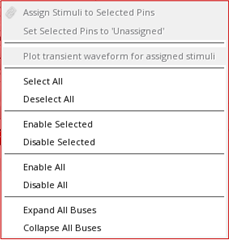 While you are working on pin assignments, you can also use the commands in the context menu in the Pin Assignments section to perform various actions such as the following