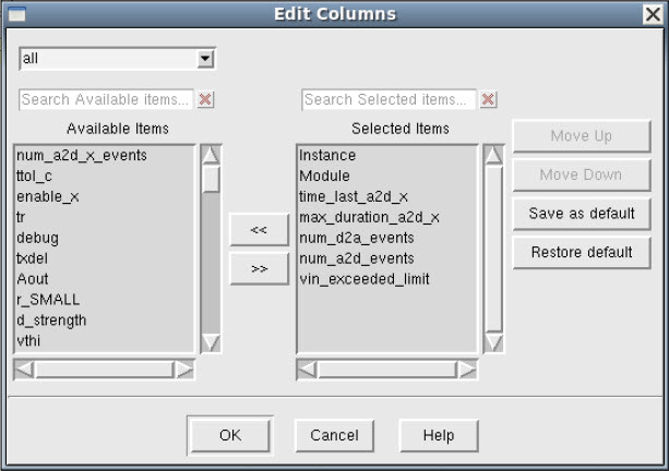 You can updatepreferences setin the ~/.simvisionrcfile in your home directory. For example, add the following in the file:preferences set iebrowser-default-columns {treeView moduleName vsup num_a2d_events num_d2a_events}