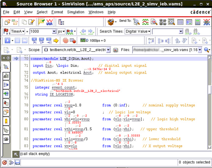 To view the source code of connect modules, select the connect module in Mixed Net Browser and click icon on the toolbar. Source Browser will display the detailed code of the selected connect module. Click to enable back annotation in Source Browser.