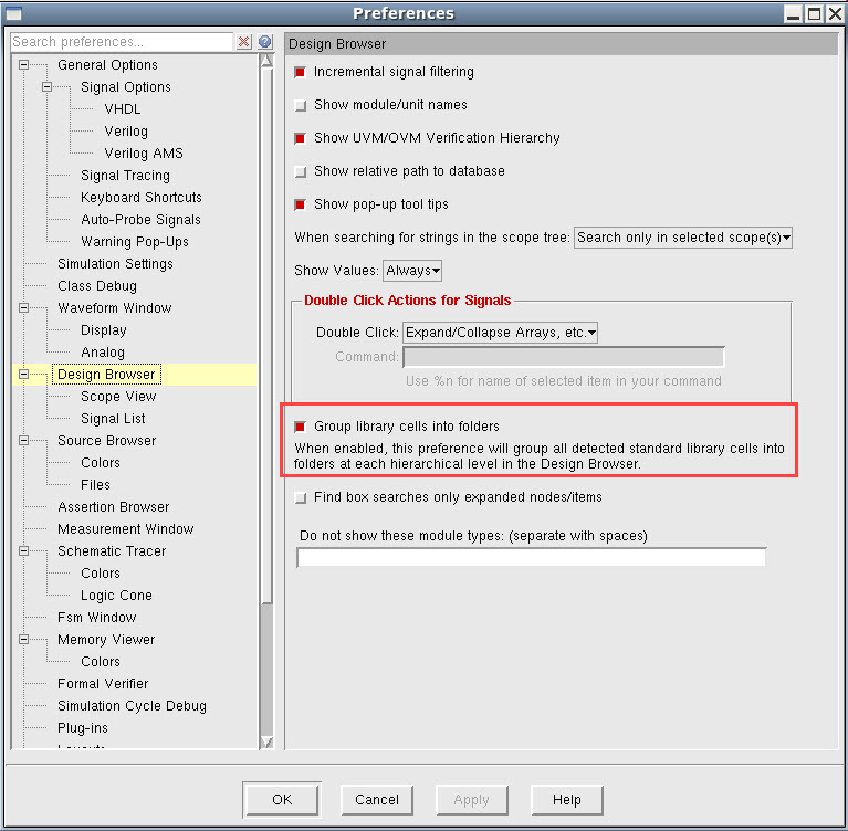 The Preferences form appears. - Deselect Group library cells into folders.