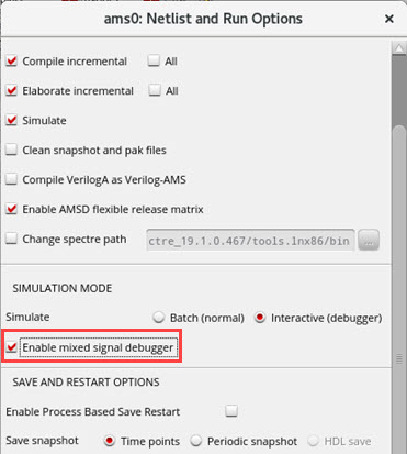 -ams_edbcan be used without-guiso that no GUI will be invoked at the beginning. Later a standalone SimVision session can connect to a live Xcelium session with enabled mixed-signal debug features.