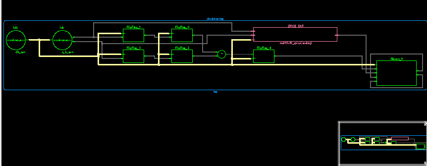 The critical signal path is highlighted in yellow when a signal is clicked.
