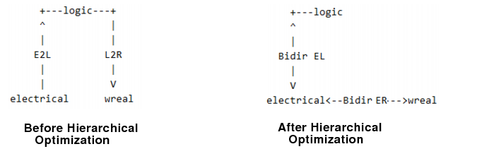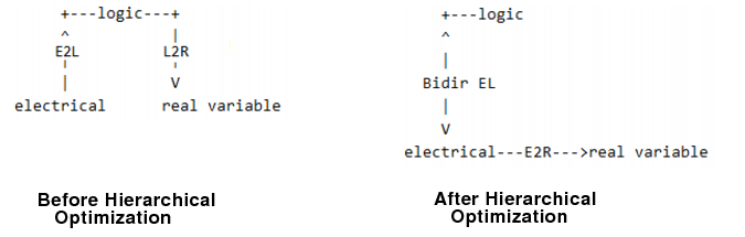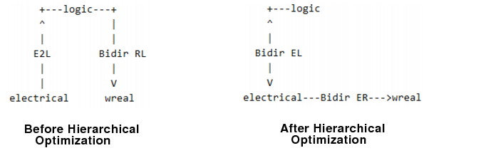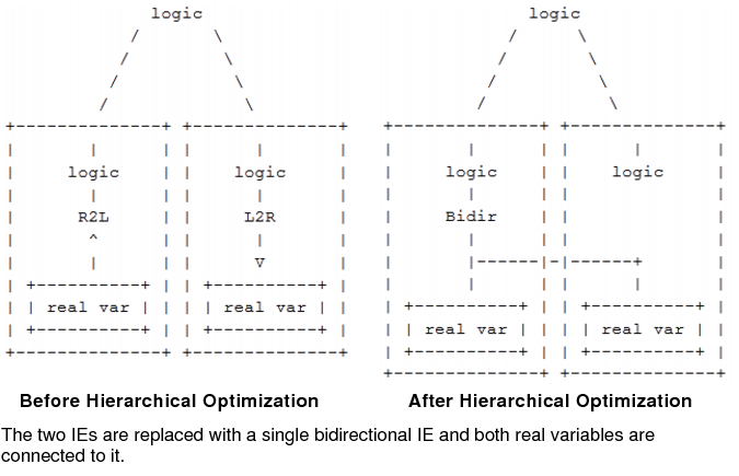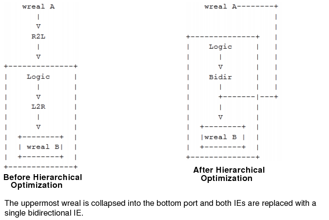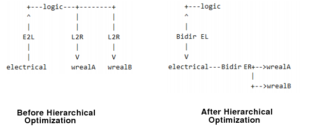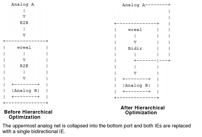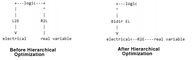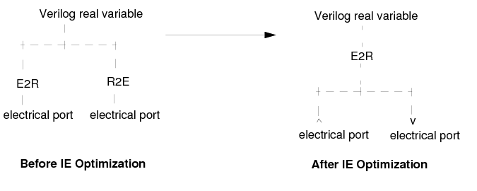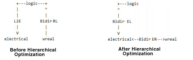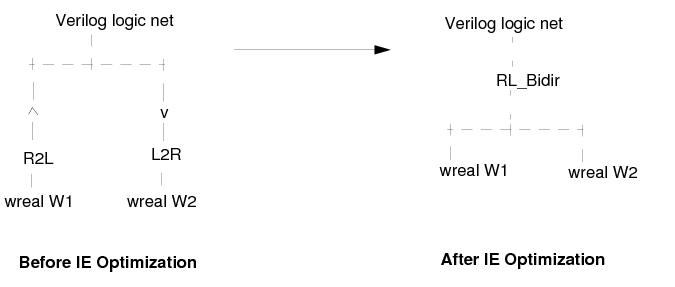 In case of nets involving real/logic connections, multiple dissimilar IEs between the logic net and the real or user-defined ports are replaced with a single real-to-logic (R2L) bidirectional IE when:
