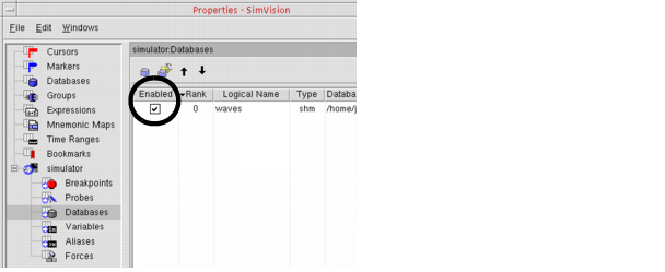 - If you are using the Cadence SimVision environment, choose Simulation - Show - Databases.