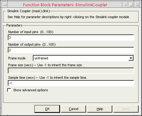 Some telecommunication simulations work with a data-stream-driven simulation. Some DSP algorithms process a data frame instead of single samples. Simulink provides framed signals for this purpose. To increase the simulation performance, cosimulation also supports framed signals. To investigate framed signals, do the following: