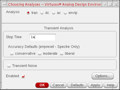 In the Virtuoso® Hierarchy Editor, choose AMS – Detailed Setup – Analyses.