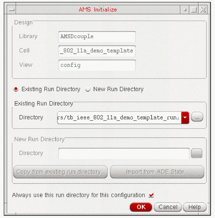 The AMS Designer environment requires that you initialize a run directory. The tutorial files