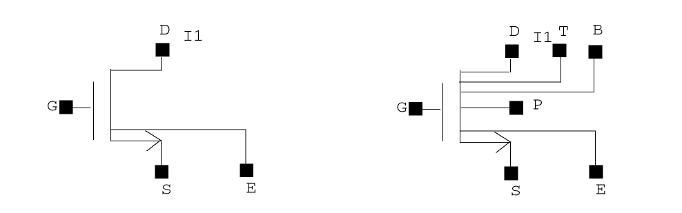 The GaAs MESFET model was derived from the model by H. Statz and others at Raytheon. This model is completely symmetric and is modified slightly to make it charge conserving. GaAs MESFET instances require that you use a model statement.