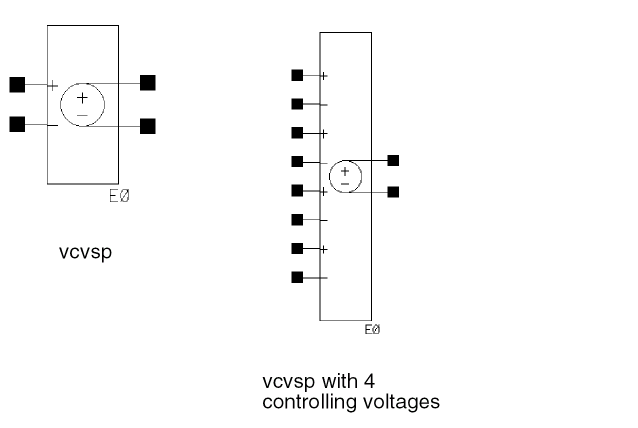 vcvsp is a Pcell-based voltage controlled voltage source in which the symbol varies with the number of controlling voltages.