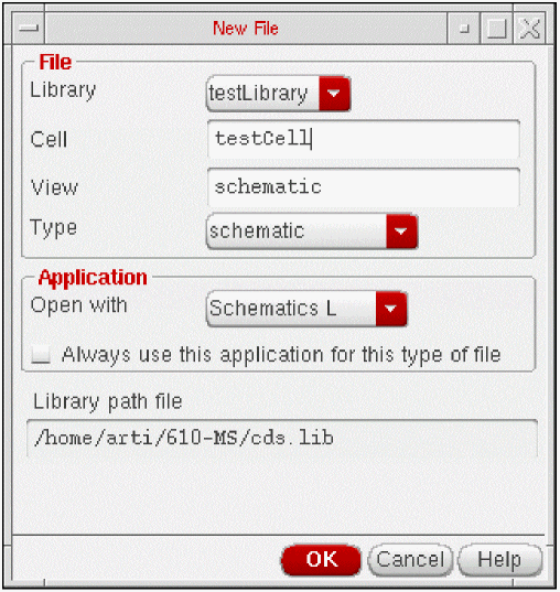 testCellin the Cell Name field and schematic in the View Name field. - Select Schematic from the Type list box.
