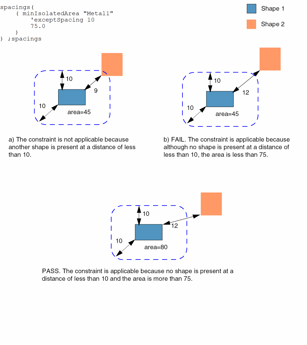 spacings( ( minIsolatedAreatx_layer['exceptSpacingg_exceptSpacing] ]f_area)