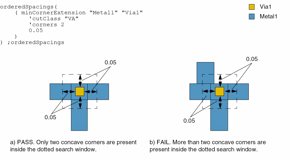 orderedSpacings( ( minCornerExtensiontx_metalLayertx_cutLayer'cutClass {f_cutWidth| (f_cutWidth f_cutLength) |t_name} 'cornersx_corners f_extension)