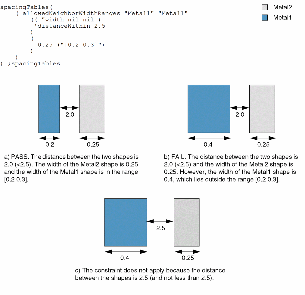 spacingTables( ( allowedNeighborWidthRangestx_layer1 tx_layer2(( "width" nil nil ) 'distanceWithinf_within['widthRanges (g_widthRanges)] ['otherWidthRanges (g_otherWidthRanges)] [f_default] ) (g_table) )