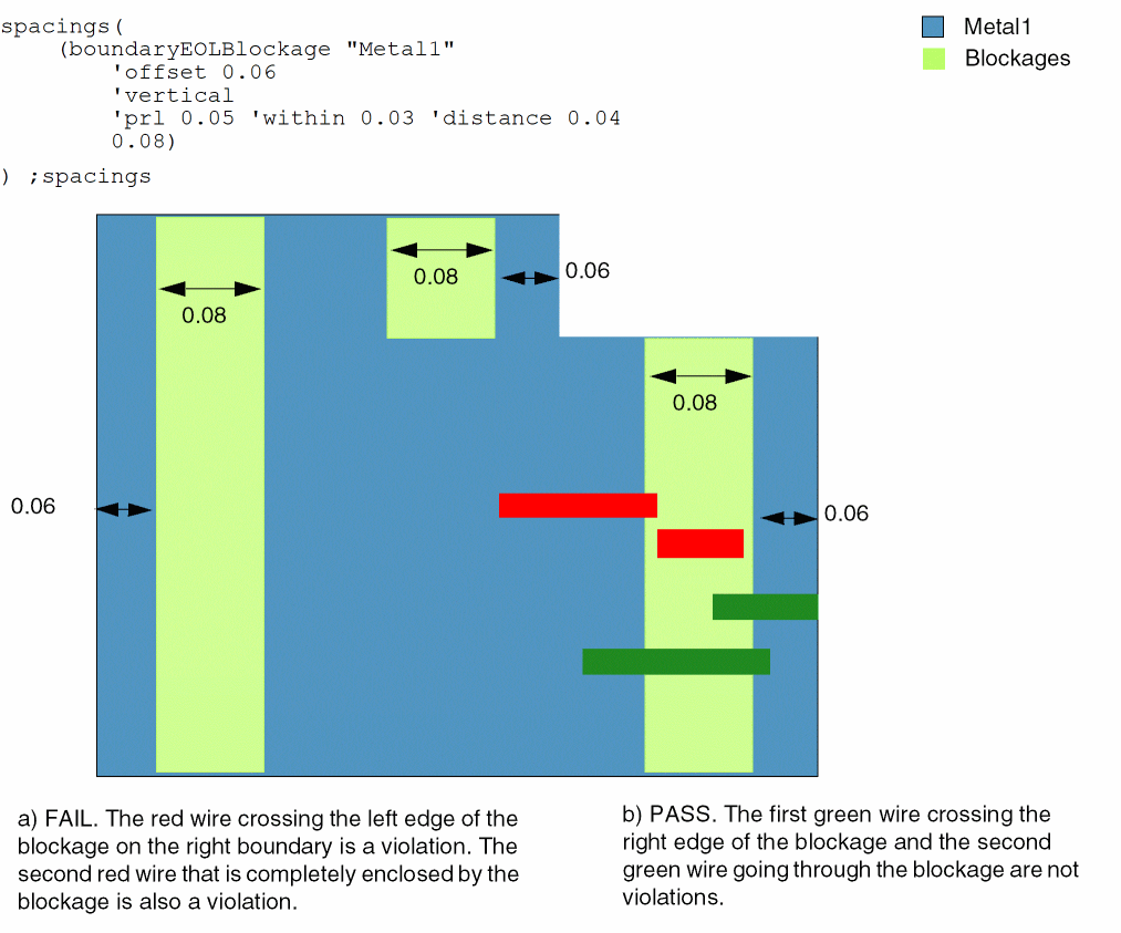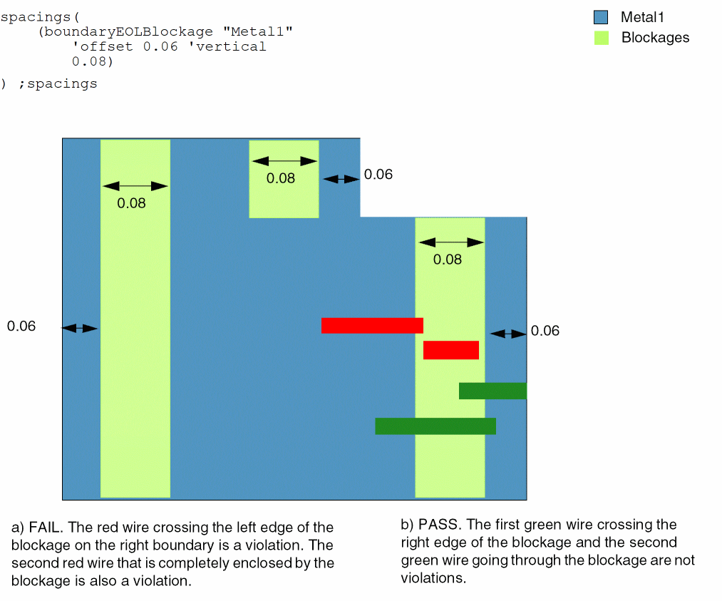 For the Metal1 layer, the size of end-of-line blockages formed in the horizontal direction from the design boundary edges is 0.08.