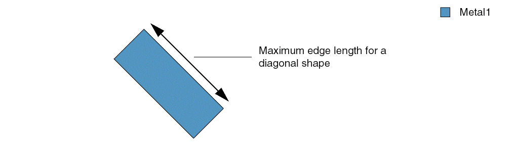 The maximum diagonal edge length must be 3.0 on Metal1 and equal to the value of the technology parameter diaglength2 on Metal2.