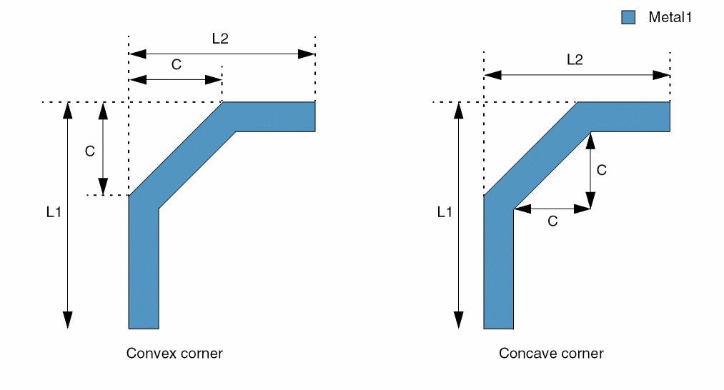 In some advanced node processes, 90-degree corners are not allowed on last layer metal. This constraint models this rule.